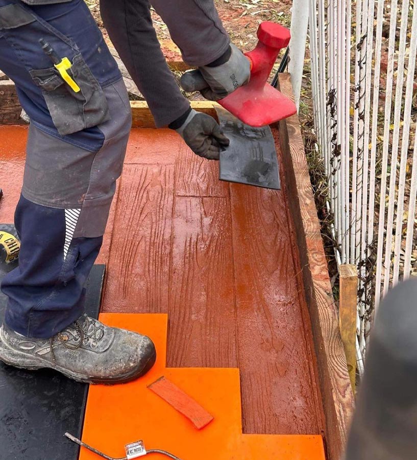 Comment avons-nous réalisé le béton imprimé aspect bois vieilli ?
